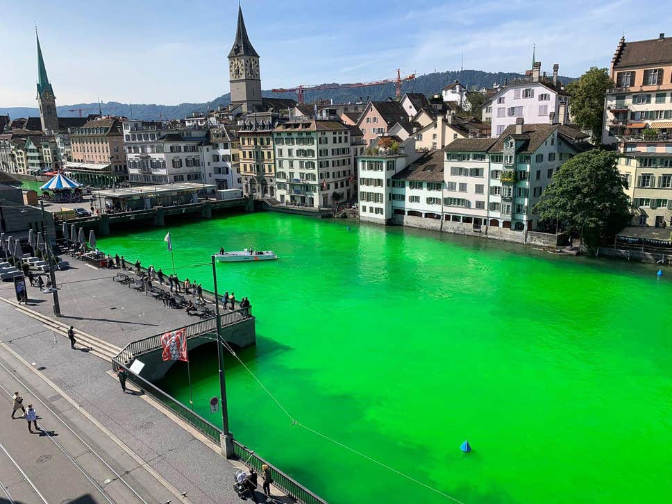 KeymasterA bit more imaginative than a blockade – XR in Zurich turn the River Limmat bright green.