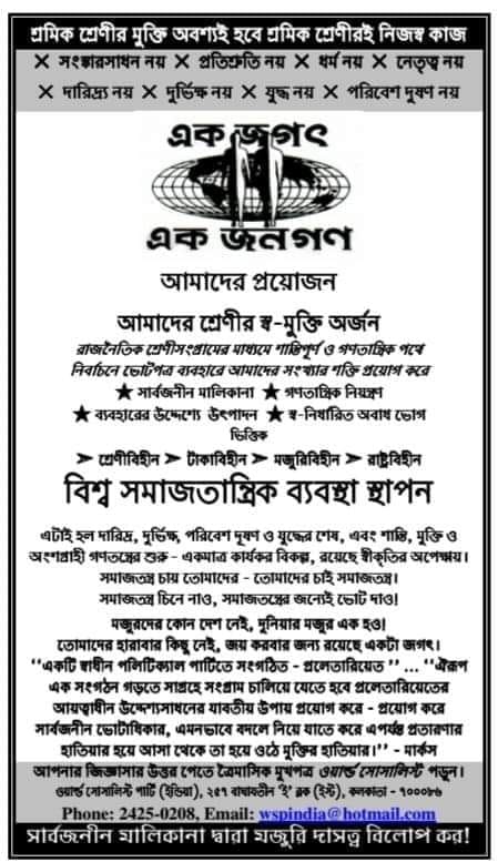 In common with other parties of the WSM, the WSP (India) was formed as a revolutionary party opposed to Leninism and seeking to win control of the state by parliamentary means in order to abolish it and establish socialism on a worldwide scale.